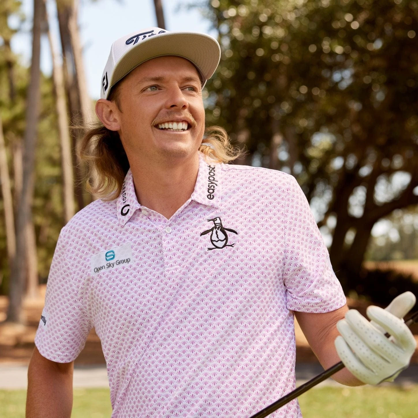 An allover geo print brings a fun retro vibe to this Original Penguin men’s golf shirt. The single knit fabric is enhanced with stretch for flexible comfort as you bend and swing and it includes 30% recycled polyester. With its comfortable self collar, breathable short sleeves, and distinctive Pete sticker logo, this golf top is an easy choice whether you’re heading out for a few rounds of golf or a few rounds of drinks.