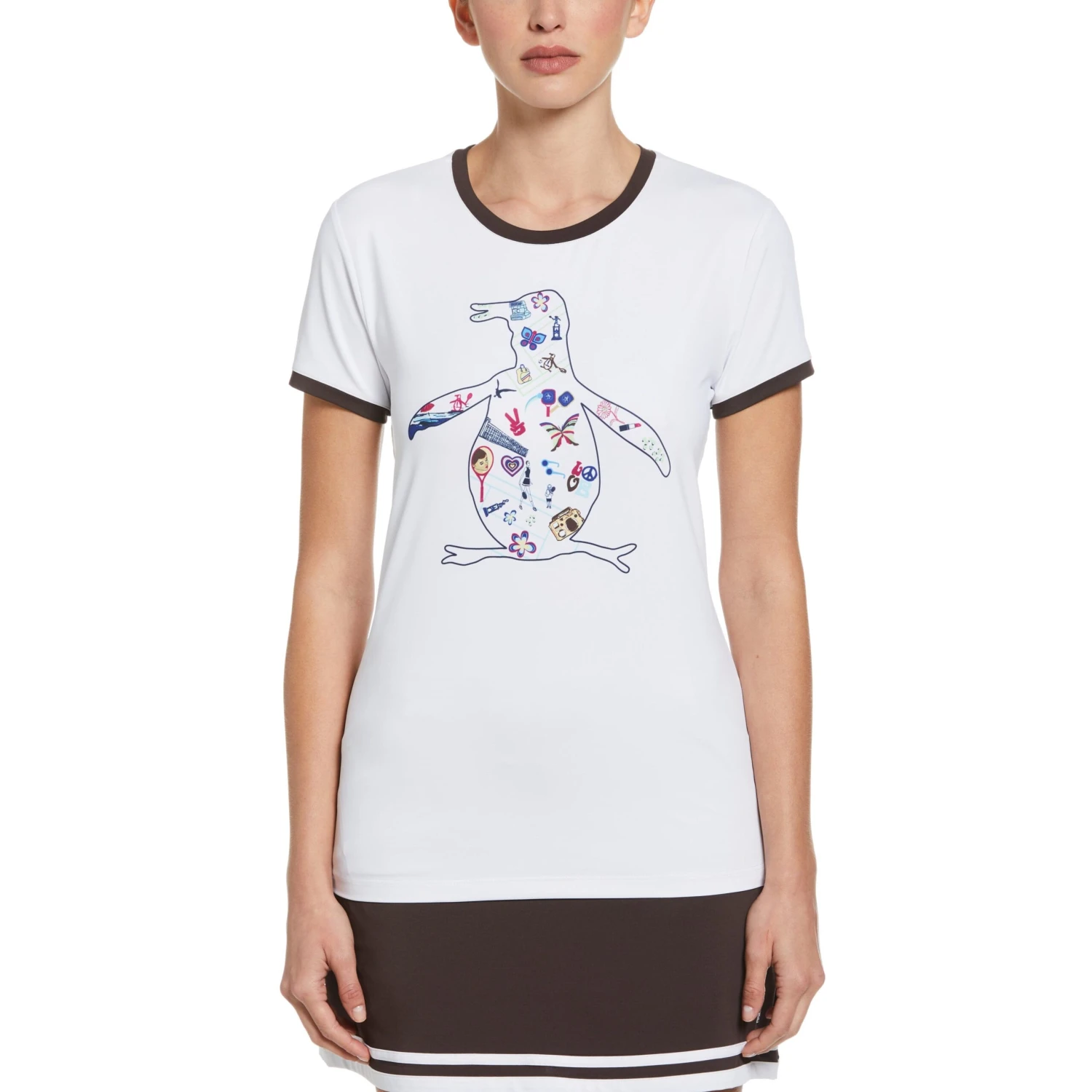 Score points for style in this Original Penguin women’s tennis t-shirt. Single knit fabrication combined with a hint of stretch maximizes comfort, letting you make the most of every shot. Designed with a comfortable crew neck, this short sleeve tennis shirt features a colorful Pete logo filled with 90’s inspired graphics on the chest adds a fun visual appeal. Made with 40% recycled polyester, this eco-friendly tennis shirt is a definite winner.